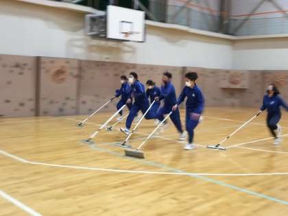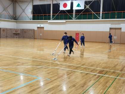 会場の片付けには有志の生徒が集まり、協力してモップがけを行ってくれました。