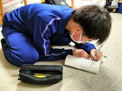 部屋長会の時間、各部屋では一日の反省を書いたり、部屋をキレイにして部屋長を待ったりしています。
