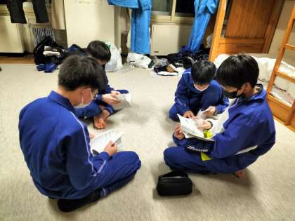 部屋長会が終わり、部屋長からの伝言が行われていました。