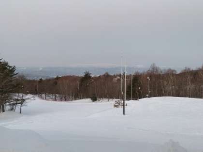 6時時点の気温は0度、若干の曇り空ですが、交流の家から見る景色はとてもキレイです。
