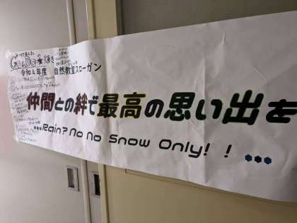 学校から持参したスローガンの記された横断幕には、先生たちが見つけた生徒の頑張りがたくさん書き込まれていました。