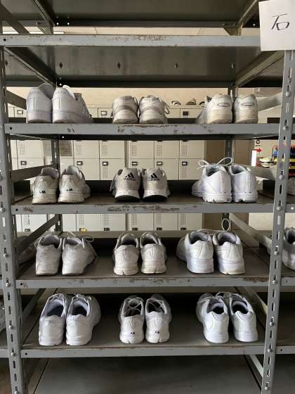スキー研修に出かけたあとの生徒たちの体育館シューズ。