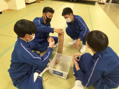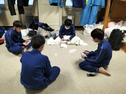 入浴を済ませ、サッパリしたあとは、夕食までのしばらくの間、仲間とゲームを楽しんでいます。