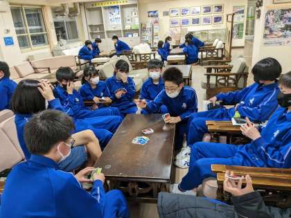 食後は、しばし仲間との歓談タイム。 当たり前のように、ゲームが始まります。