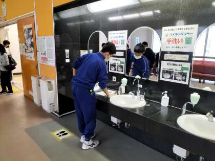 全員が手洗いを済ませ、食堂に入ったあと、一人の生徒が手洗い場にやって来ました。