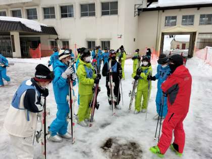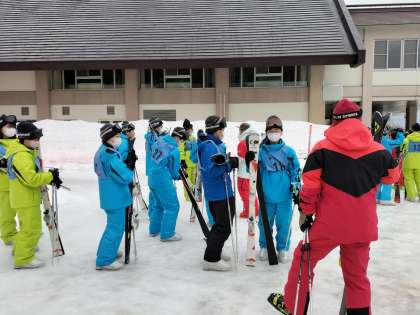 インストラクターさんと元気なあいさつを交わし、いよいよ最終回のスキー研修がスタートしました。