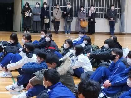 全員無事に学校に戻ってきました。 帰着式の様子です。