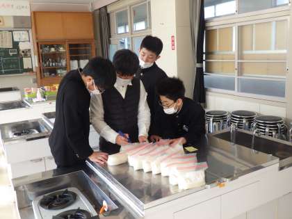 収穫した石農米を100以上も小分けにし、昨年末の個別懇談会の際に各家庭に配付しました。今回は、先生たち向けに新たに小分けにし、職員室へ運んでくれました。
