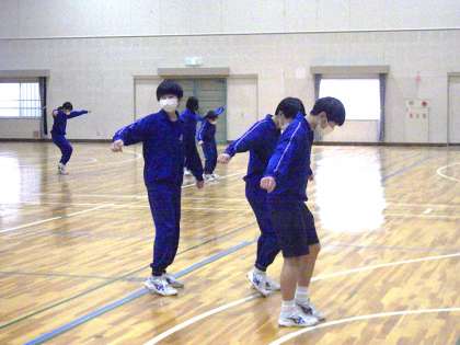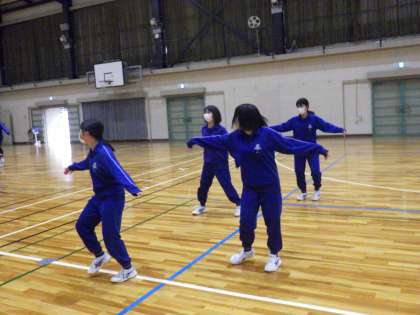 昨年より技の難易度がレベルアップしたダンスの授業。最初は、一年ぶりのダンスの授業に戸惑っている生徒も多かったのですが、次第に体が感覚を取り戻してきたようです。また、冷え切った体育館ではじっとしているのもツライ…。