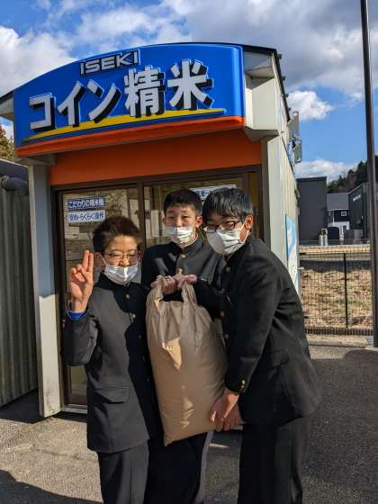 今年度の石農米づくり最後の工程となる “精米”。「うるち米」はすでに精米・袋詰めを済ませ、12月の個別懇談会の際に各家庭に配付しています。