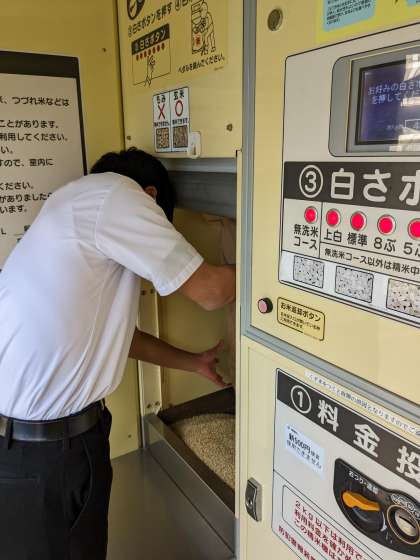 今回は「もち米」の精米にJA中金支店さんに出かけ、機械で作業をしてきました。このもち米は、卒業式の赤飯、入学式の紅白餅用のものです。