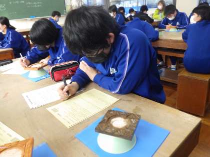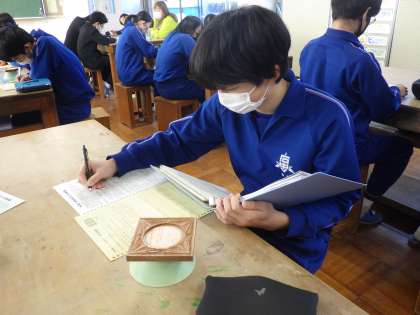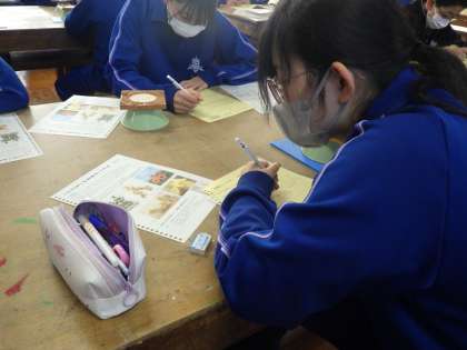 その後、作品づくりを振り返り、評価を書き込んでいました。