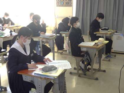 日々の課題で出されている入試対策プリントの解説が行われた後、通常の単元の授業に入っていきました。