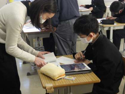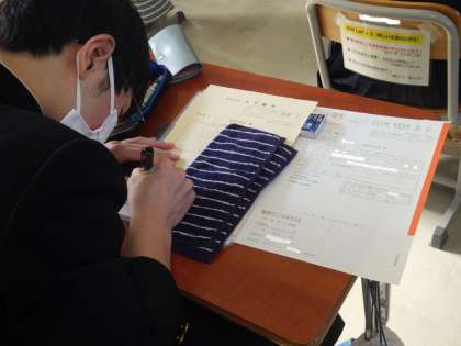 公立高校受検のための出願の準備が行われていました。願書の清書を緊張しながらも丁寧に行っていました。