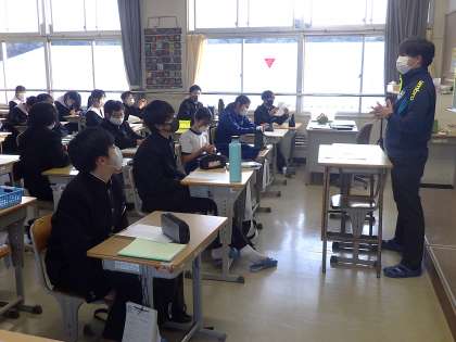 間近に迫った学習診断テストや学年末テストに向けて、担任が熱く語っていました。
