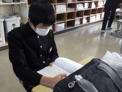 明日、私立高校の一般入試がある生徒もいるため、仲間同士での面接練習や受験勉強に取り組んでいました。府やんや緊張でいっぱいかと思いきや、リラックスした雰囲気で勉強していて、少し安心しました。
