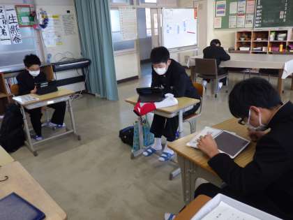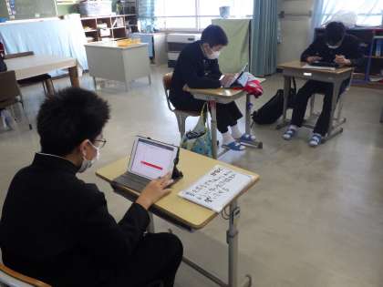 タブレットを使ったドリル学習に真剣に取り組んでいました。