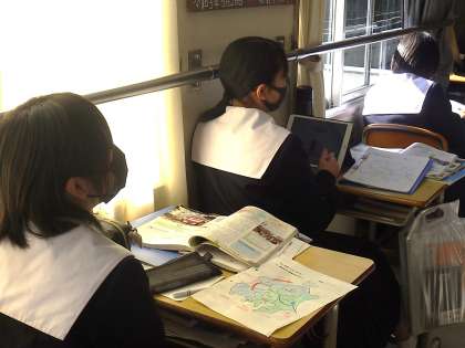 歴史分野の学習をひと段落させ、地理分野の学習に移っていました。そこで今回は「関東地方」の都市問題について学んでいました。来年度、修学旅行で訪れるかもしれない地域の学習に興味を持って授業に臨んでいるように感じました。