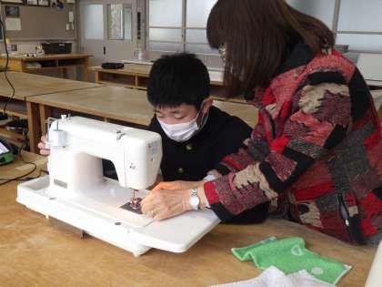 ミシンを使って雑巾づくりに取り組んでいました。これまでにもミシンは定期的に使っているので、準備はスムーズに行えていました。また、自分の作った雑巾を見せに来るほど、その出来にも自信があるようです。一直線の縫い跡から、自信のほどがうかがえました。