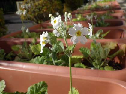 職員室南側のテラスには、卒業式や入学式の会場を彩るための花がプランターに植わっています。写真は「カスミソウ」。花言葉の一つに “無邪気” があります。
