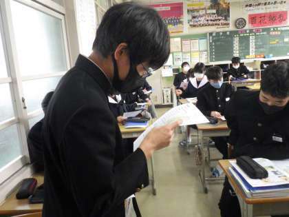 地理分野で「東北地方」について学んでいました。6つの県名や県庁所在地、重要な語句を確認していきます。プリントを読むこと一つをとっても、立ったり、座ったり、仲間同士で読み合ったり、読み終わったら挙手をしたり、読みが遅いと追加の質問をされたり…。何とも忙しい、動きの多い授業です。そんな中でも、プリントにメモを書き込んだり、マーカーで色をつけたりしていきます。