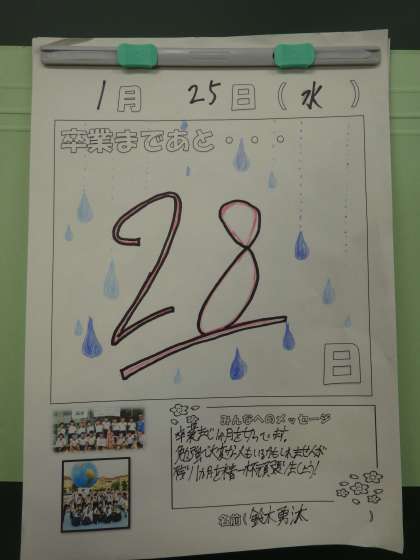 今日の登校を含め、卒業式まであと28日です。