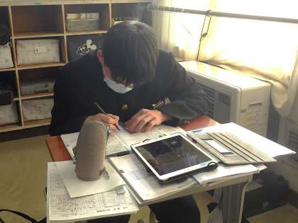 データを活用して答えを導き出す学習に取り組んでいました。教科書や学習用タブレット、テキストなどの様々な問題を解いていきます。データの内容を見極めながら、答えを導き出していました。