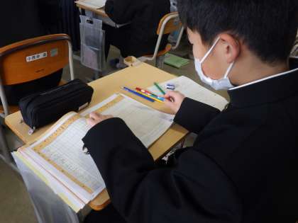 「栄養素の特徴をはたらきを理解する」を課題に学習が進められていました。成分表から必要な栄養素の高い食品を探し出していきます。