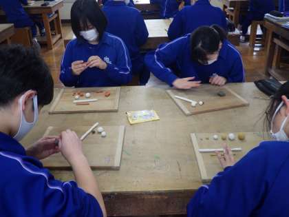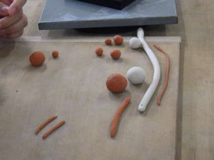 抽象彫刻の作品づくりに入っていました。初回の今日は色違いの粘土で作った球体や棒状のパーツを使い、今後の作品づくりのイメージを膨らませていきます。