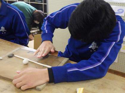 何も考えずに粘土を丸めたり、伸ばしたりする作業では、「なんだか楽しい」「無心になれる」などのつぶやきが聞こえました。その後の作品づくりでは、想像力をはたらかせ自分のイメージする形に仕上げていました。