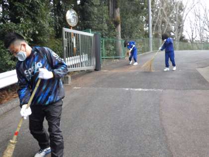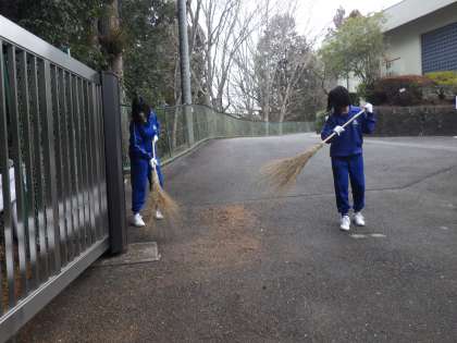 寒い中、学校のために活動してくれる3年生の女子生徒に感謝です!