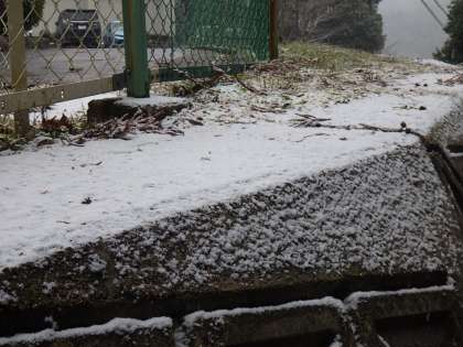 朝から降り続ける雪。アスファルトの部分をよく見るとシャーベット状の雪が積もっています。