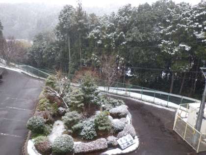 きれいな雪景色を楽しむにはいいですが、できれば下校までにやんでほしい…。