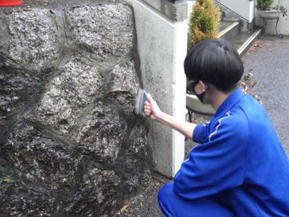 これまでにも取り組んできた石垣やコンクリートのコケ落とし。雪の降った寒さの厳しい日でも、その活動は続けられていました。