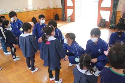 本日の午前中、3年生が上鷹見こども園に出かけ、保育実習を行ってきました。