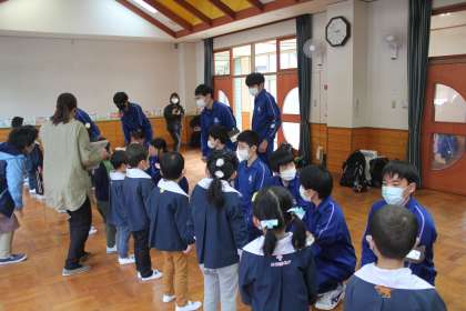 いらぬ心配でした…。園児たちと対面し、すぐに笑顔に戻りました。