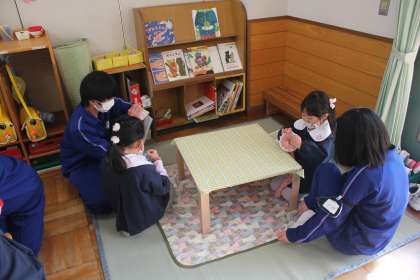 本日の午前中、3年生が上鷹見こども園に出かけ、保育実習を行ってきました。