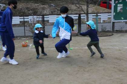 本日の午前中、3年生が上鷹見こども園に出かけ、保育実習を行ってきました。