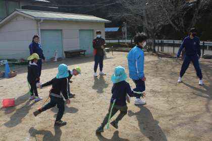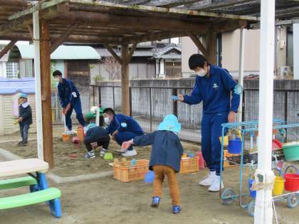 本日の午前中、3年生が上鷹見こども園に出かけ、保育実習を行ってきました。