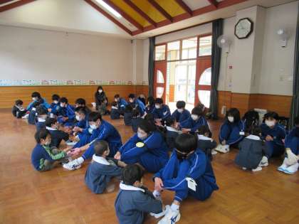 本日の午前中、3年生が上鷹見こども園に出かけ、保育実習を行ってきました。