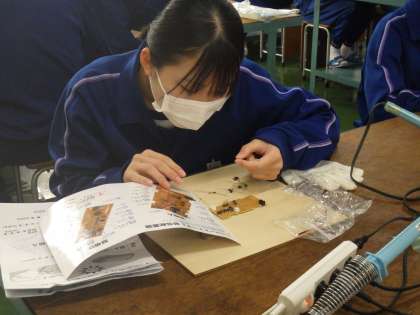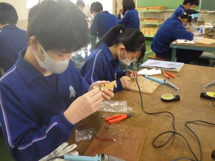 セパレートトーチの製作に入っていました。これまでのはんだごての学習を生かし、細かなパーツを回路に組み込んでいきます。完成を楽しみに、家庭でも活用できる製品づくりに取り組んでいきます。