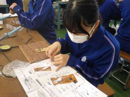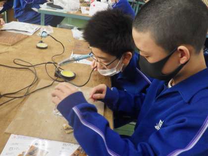 セパレートトーチの製作に入っていました。これまでのはんだごての学習を生かし、細かなパーツを回路に組み込んでいきます。完成を楽しみに、家庭でも活用できる製品づくりに取り組んでいきます。
