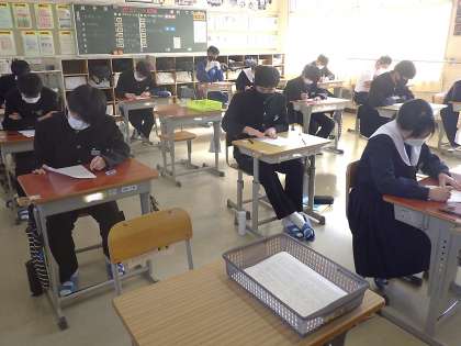 単元テストが行われていました。受験勉強という膨大な範囲の勉強と同様、授業で行われるこうしたテストも重要と考え、しっかりと取り組んでいます。
