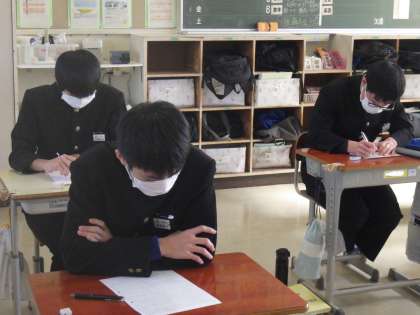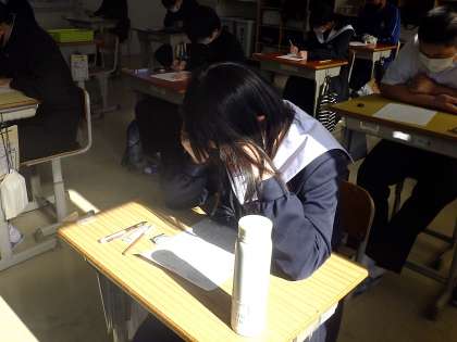 単元テストが行われていました。受験勉強という膨大な範囲の勉強と同様、授業で行われるこうしたテストも重要と考え、しっかりと取り組んでいます。