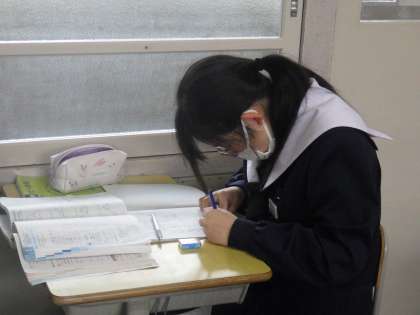 一年間のまとめとして、すべての単元の復習が行われていました。明日の学習診断テストに向けて、それぞれの弱点を集中的に勉強していました。