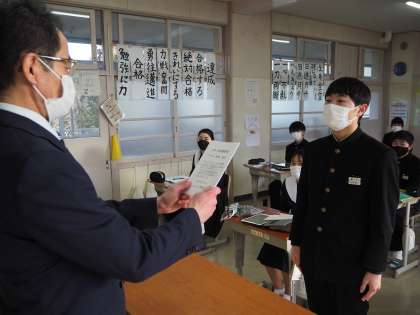 昨日の朝、月間精勤賞(1月分)が校長先生より授与されました。