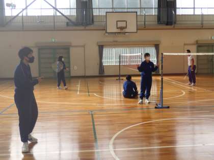 3年生の体育・バドミントンの授業の様子です。