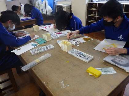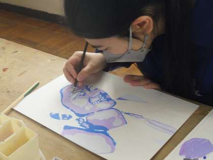 塗りの作業を続けるうちに次第に浮かび上がる自分の顔。慎重に作業を進めていました。