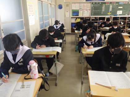 今年度最後の定期テスト。これまで以上の意気込みが感じられます。直前まで努力してきたことが十分に発揮されることを期待したいと思います。