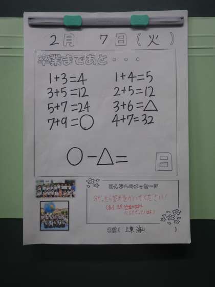 はっきりとした数字は示されていませんが、卒業式までの登校日数は「あと19日」です。